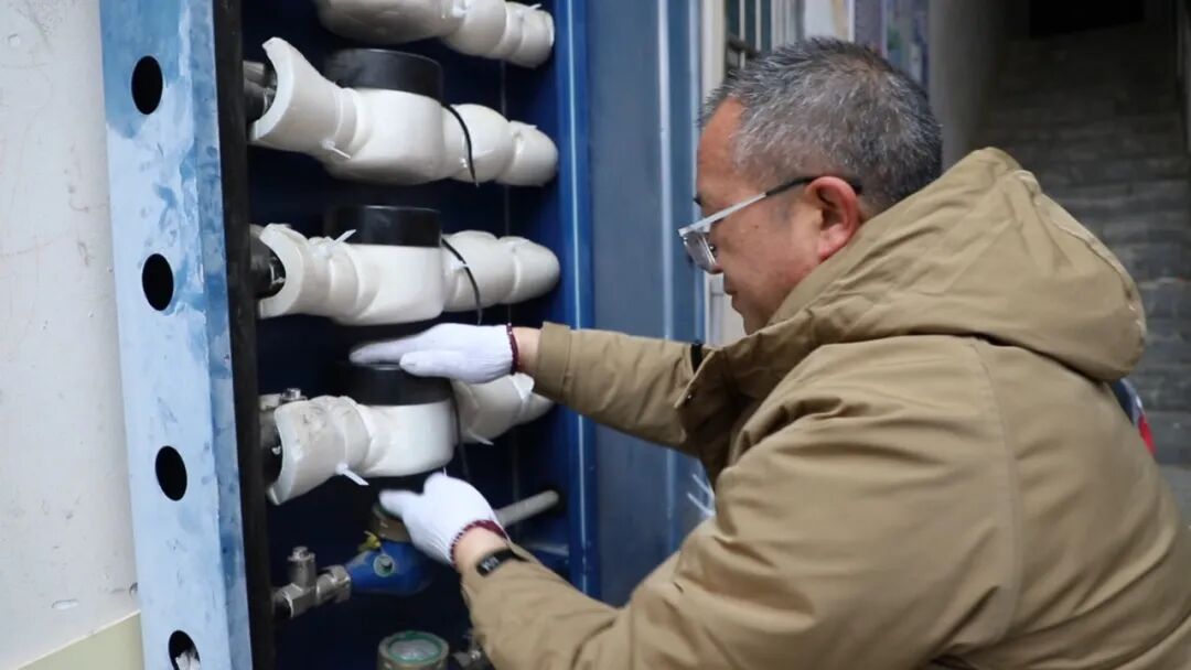 在丹寨县龙泉镇泉山小区,供水部门工作人员正逐一对居民楼的水管、表箱、闸阀等关键供水设施进行拉网式排查,对老化破损的保温棉及时更换,为供水设施穿上“保暖衣”。与此同时,供水部门还聚焦水厂生产核心环节,对车间供水设备、电闸电压、水闸运行状态等进行全方位检查,确保从源头到终端的供水设备平稳运转。